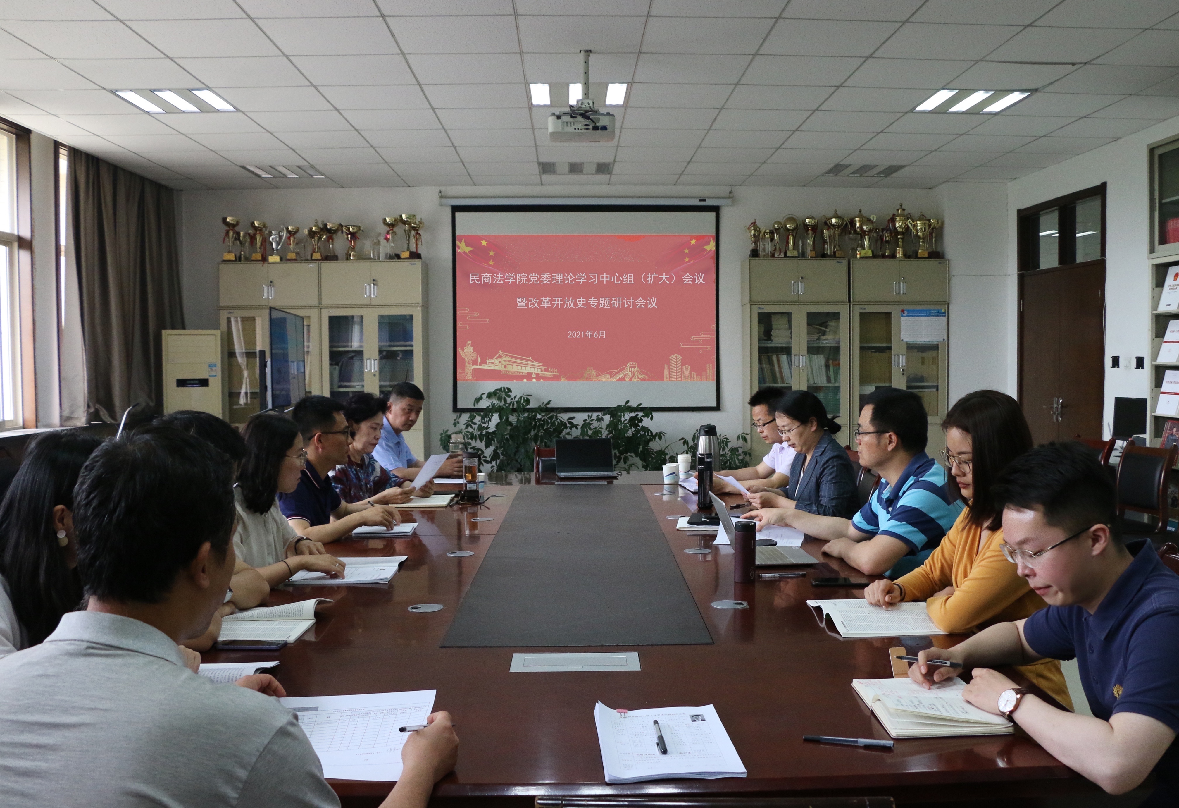 6月1日上午,民商学院党委在学院资料室召开理论学习中心组(扩大)会议,专题学习改革开放时期党的奋斗史,并就贯彻党的教育方针,把握改革开放时期的伟大历史进程对高等教育事业发展的经验启示交流学习体会。学院党委书记周怡主持会议,学院班子成员、支部书记参会。