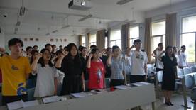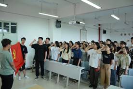 随后,正式党员分别向新发展的预备党员发放了精心制作的“党员政治生日纪念卡”,提醒他们要不忘入党初心,增强党性观念,时刻以党员的标准严格要求自己,做新时代合格共产党员。同时,两位老师为新发展的预备党员佩戴党徽,李彬潼同学带领全体预备党员面向党旗宣读入党誓词,共同表达了加入中国共产党的坚定决心。