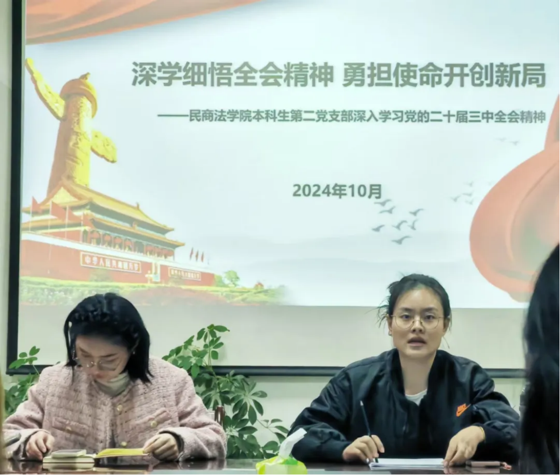 为了深入学习贯彻党的二十届三中全会精神,增强党员的政治意识和责任感,10月30日下午,9428cn太阳集团本科生第二党支部书记曹宏鲜以“深学细悟全会精神,勇担使命开创新局”为题讲授党课,支部副书记杨亚男、预备党员、发展对象参加党课学习。