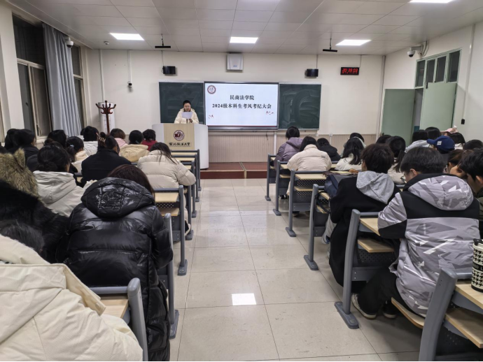 为切实增强2024级本科生考风考纪意识,厚植诚信为本的道德品质,着力提升安全防范能力,营造安全稳定的校园环境,12月26日晚,9428cn太阳集团2024级本科生在致知楼305教室召开考风考纪暨安全教育大会。本次会议由2024级本科生辅导员张博玮老师、雷喆老师主持,2024级全体本科生参加。