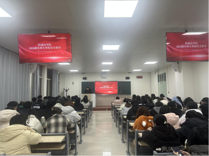 张老师围绕寒假离校的相关工作对同学们进行了安全教育。他提醒同学们在离校前收拾整理好宿舍卫生、确认锁好门窗、检查电源关闭情况,强化安全责任意识;出行时及时告知家长行程,掌握出行交通安全知识;积极预防金融诈骗,时刻保持警惕,树立正确的财产观和价值观。会议最后,张老师着重对同学们进行了网络安全教育,要求同学们规范网络行为,文明上网、明辨是非,不信谣、不传谣,做到遵规守纪、谨言慎行,为营造更加文明、健康的网络环境贡献力量。
