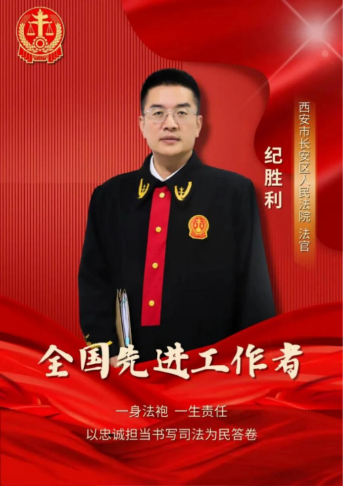 纪胜利,汉族,1978年11月出生,中共党员,2003年12月参加法院工作,现任陕西省西安市长安区人民法院执行局副局长兼执行指挥中心主任。曾荣获“双百政法英模”、全国模范法官、全国优秀法官、全国法院先进个人等荣誉。