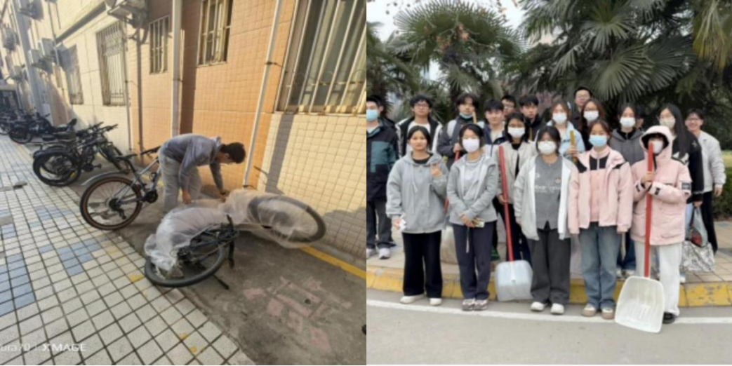 学院积极响应“服务校园发展”号召,组织各团支部开展校园清洁、生态环保、文明劝导等志愿实践活动。全院青年志愿者分组行动,对教学楼、公共楼道、绿化带等区域进行全面清扫,清理卫生死角、摆放杂乱车辆、维护校园公共秩序,以实际行动美化校园环境。