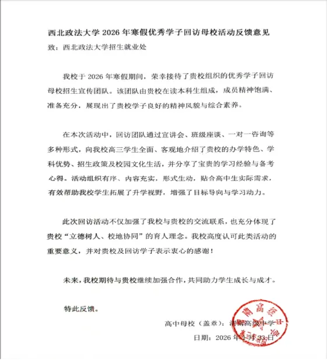 通过回访交流,进一步加强了学院与生源中学之间的沟通联系,为后续合作奠定良好基础。活动充分展现了我院学子自信从容、积极进取的精神风貌。