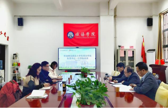12月10日,党委书记朱茂、副院长百晓锋和教务办主任高桦一行到西安外国语大学俄语学院进行调研交流,双方就“法律+俄语”复合型人才的培养进行了深入讨论。