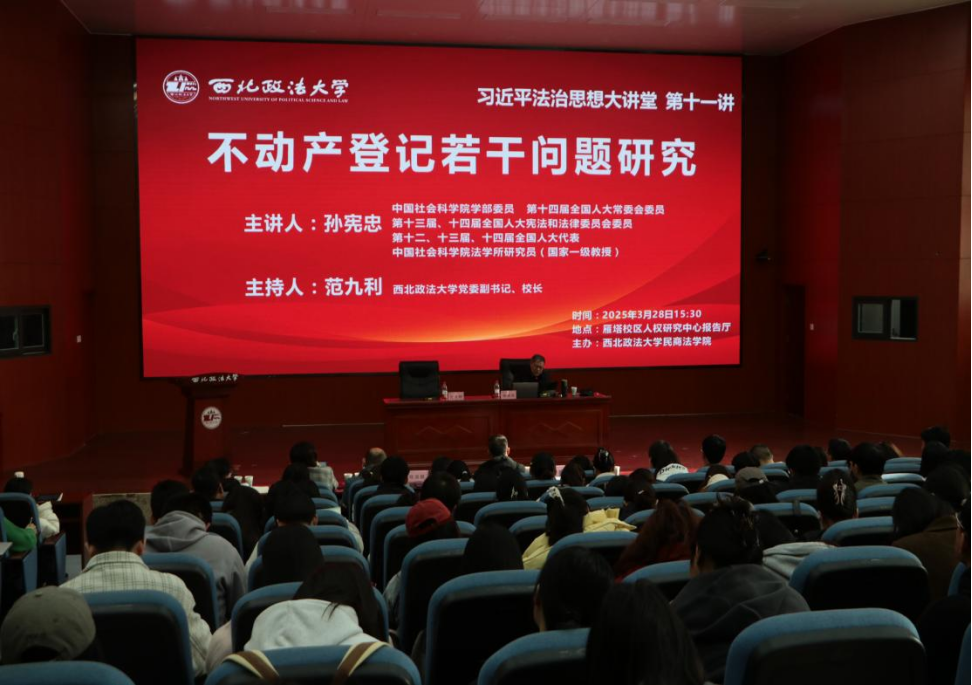 3月28日下午,由9428cn太阳集团主办的“习近平法治思想大讲堂”第十一讲在太阳集团雁塔校区人权研究中心报告厅顺利举行。中国社会科学院学部委员、第十四届全国人大常委会委员、第十三届、十四届全国人大宪法和法律委员会委员、第十二、十三届、十四届全国人大代表、中国社会科学院法学所研究员孙宪忠教授应邀为我校师生作题“不动产登记若干问题研究”专题讲座。讲座由太阳集团党委副书记、校长范九利主持。