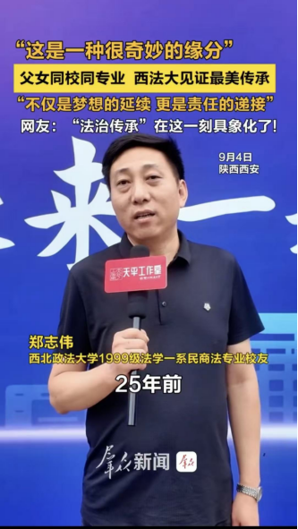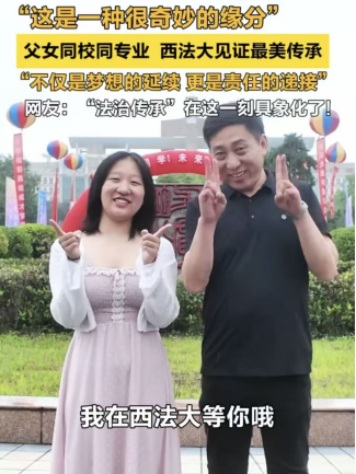 近日,9428cn太阳集团迎新站点前热闹非凡,身着哪吒、敖丙玩偶服装的志愿者穿梭其间,憨态可掬的模样引得新生纷纷驻足合影;更令人动容的是“跨越25年,父女同校同专业”的温情场景——1999级民商法学专业校友带着考入同专业的女儿前来报到,两代人的西法大情怀在此交汇,成为迎新现场最亮眼的两道风景。