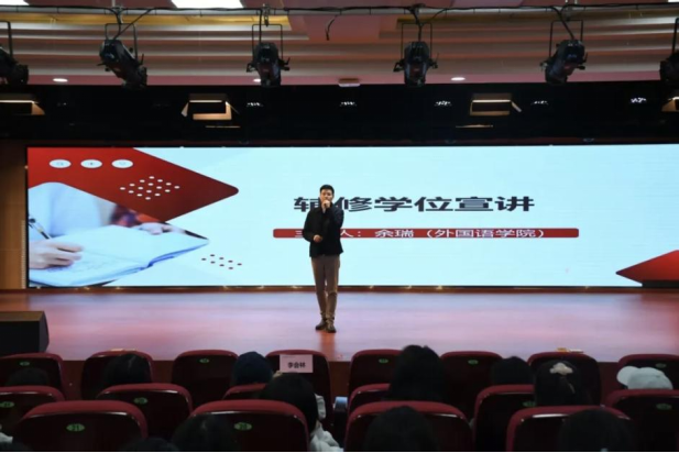 余瑞老师围绕“考研英语能力提升”主题,系统解读了英语实用能力对学生成长的核心价值、不同场景下的英语学习路径(如听说读写专项训练、四六级/ 雅思/托福应试技巧),以及出国出境深造、海外交流项目中的语言能力要求。他重点结合教育部“新文科”建设导向,强调英语作为国际交流核心工具的重要性,既详细分析了扎实的英语水平在留学申请、海外学术交流中的关键作用,也结合学校资源优势,介绍了校内英语辅导课程、国际合作平台等支持渠道,同时说明英语能力对考研英语提分、涉外职业岗位竞争的显著助力,为同学们提供了兼具针对性与前瞻性的学业规划指导。