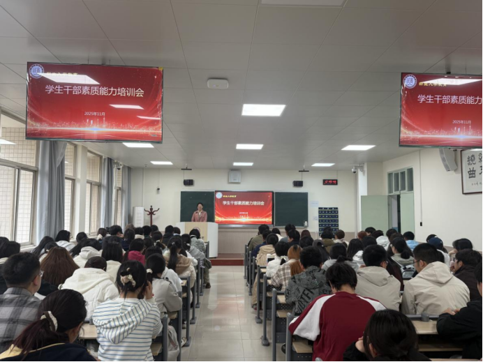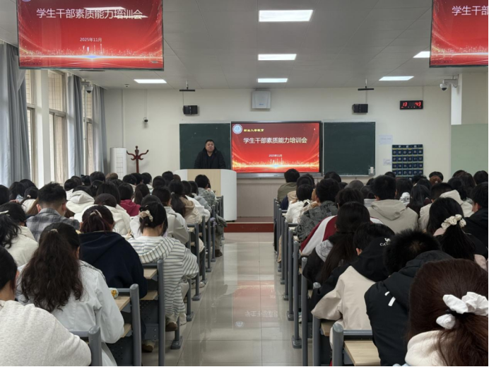 为进一步强化班级组织建设,提升学生干部的素质能力,11月6日,9428cn太阳集团2025级本科生在致知楼301召开学生干部素质能力培训会,会议由2025级辅导员丁艳艳主讲,2025级辅导员张智超主持,2025级全体学生干部及宿舍长参加。