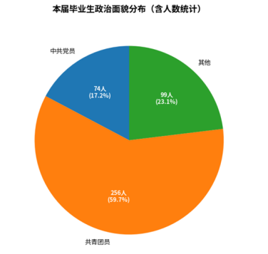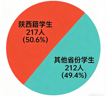 本届毕业生共429人,群体呈现“政治素养高、结构分布优”的鲜明特点。政治面貌方面,中共党员74人、共青团员256人,党团群体占比达77%,多数学生在校期间积极参与党团活动与社会工作,在学院“立德树人”根本任务引领下,形成“忠于法律、甘于奉献”的职业追求;地域覆盖上,陕西籍学生217人(占比50.6%),其他省份学生212人(占比49.4%),覆盖全国多省份,多元的文化背景赋予学生开阔的视野与较强的适应能力,既适配本土法治建设需求,也能满足跨区域企业的人才布局,为用人单位提供广泛选择空间。
