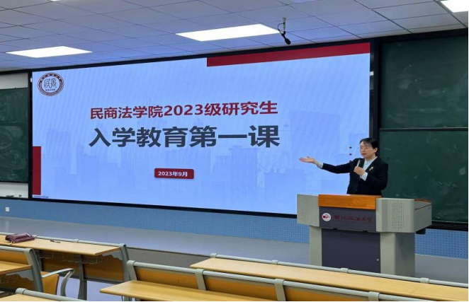院长程淑娟老师讲授“院长第一课”。程院长对于2023级研究生表示热烈的欢迎,并向同学们介绍了学院才学兼优的师资队伍以及科学完善的学生培养体系。她由学习实践切入,向新生提出了五点要求:一是珍惜研究生阶段的学习机会,以积极热情的态度投入学习研究中去;二是多读书读好书,从书中来汲取养分,提升自己;三是培养时间观念,加强自我管理意识;四是善于与老师多交流多沟通,敢于抓住机会,成为更优秀的自己;五是学会类推,注重法学学习方法,培养学科的专业素养,扎牢专业知识的基础。程院长祝愿2023级学子在三年的时光里可以学有所得、学有所获。