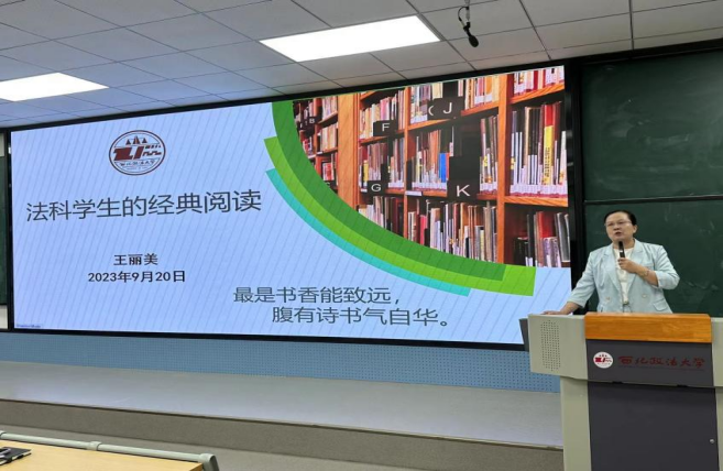 学院晨星读书会创办人王丽美老师以“法科学生的经典阅读”为题与同学们做了分享。王丽美老师简要介绍了晨星读书会的基本情况,她指出,读书会不止读经典书目,还有专门针对研究生的论文领读环节,研究生阶段的学习,要在阅读中对论文进行解构再建构。王丽美老师与同学们分享了来自读书会的同学的各项学习成果,并希望同学们能够积极参与读书会,多读书,读好书。