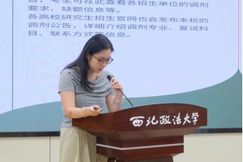 2023级本科生辅导员、 “法途职引”职业规划工作坊负责人刘洋对2026届考研形势进行分析解读。