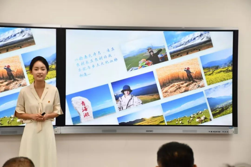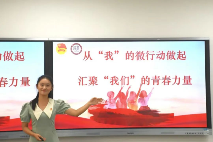 陈菲儿从乡村振兴的角度,分享自己与团支部共同成长的故事。作为班级团支书,她注意到鲜少有人将“返乡”写入未来规划,作为生长于农村田野的孩子,她决心改变现状,通过讲述青年榜样扎根乡野、化“土货”为“网货”的故事,点燃支部成员的热情。在她的引领下,支部成员们积极投身“返家乡”“三下乡”实践,在乡土中感悟生机,践行“青年脚步所至,即乡村振兴希望所在”的信念。在即将到来的假期里,她自己也将带领支部重返青海枸杞田垄,借直播架起高原与世界的桥梁,续写助农新篇,完成从认知到行动的蜕变,让青春理想在乡土里扎根成长。