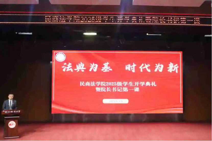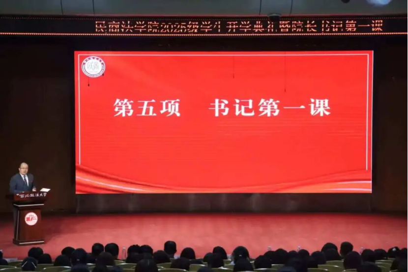 朱茂为2025级全体新生讲授了“书记第一课”。朱书记首先介绍了学校的基本情况与历史沿革,指出学校红色基因浓厚,法学特色鲜明,建校以来为国家和社会培养了大量人才。其次他对同学们提出三点希望:一是深植红色根脉,以忠诚铸魂立心,在延安精神滋养中,忠诚于对马克思主义的信仰和对法治中国的坚守;二是精研法治真义,以德法兼修立身,既要在钻进法典条文穷究其理,又要躬身实践体悟“奉法图强”的重量;三是勇担时代使命,以实干笃行立业,通过社会实践、专业见习、实习等各项校内外活动锤炼本领,投身社会治理法治调研服务基层。最后他鼓励同学们以校史为鉴、以使命为帆,让青春在法治中国建设的实践中绽放光彩,成长为堪当民族复兴重任的法治新人。