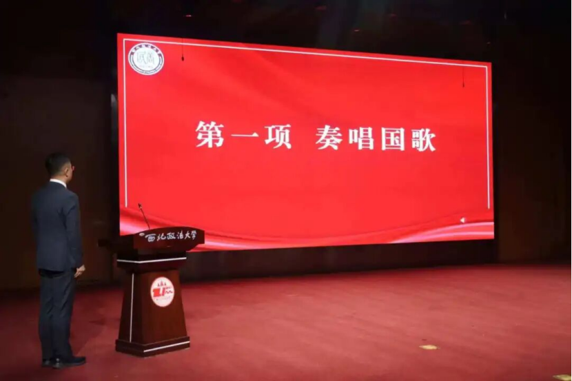 在庄严肃穆的国歌声中,本次典礼正式拉开了序幕。