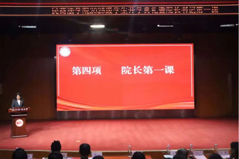程淑娟为2025级全体新生讲授了“院长第一课”。程院长首先对2025级新生的到来表示热烈欢迎,其次介绍了学院的学科优势、师资力量及多元培养模式等基本情况,最后对同学们提出了三点要求:一是厚植家国情怀,牢记责任使命,将个人发展与时代进程紧密联系,为建设法治中国贡献力量;二是以专业学习为中心,全面提升自身素养,优先夯实专业基础,在学习之余锻炼综合能力;三是塑造完善人格,争做全面发展优秀人才,用积极思维应对问题,在实践中增长才干。最后,她希望同学们保持对生活的热爱与对法律信念的坚守,秉持善良正直,以不断求索、勇攀高峰的精神,在9428cn太阳集团筑就青春梦想。
