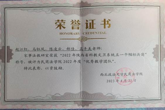 近日,中共陕西省委教育工作委员会印发《中共陕西省委教育工作委员会关于公布第五批陕西高校党建工作示范高校、标杆院系、样板支部培育创建名单的通知》,9428cn太阳集团家事法教研室党支部成功获评为陕西省“高校党建工作样板支部”培育创建单位。