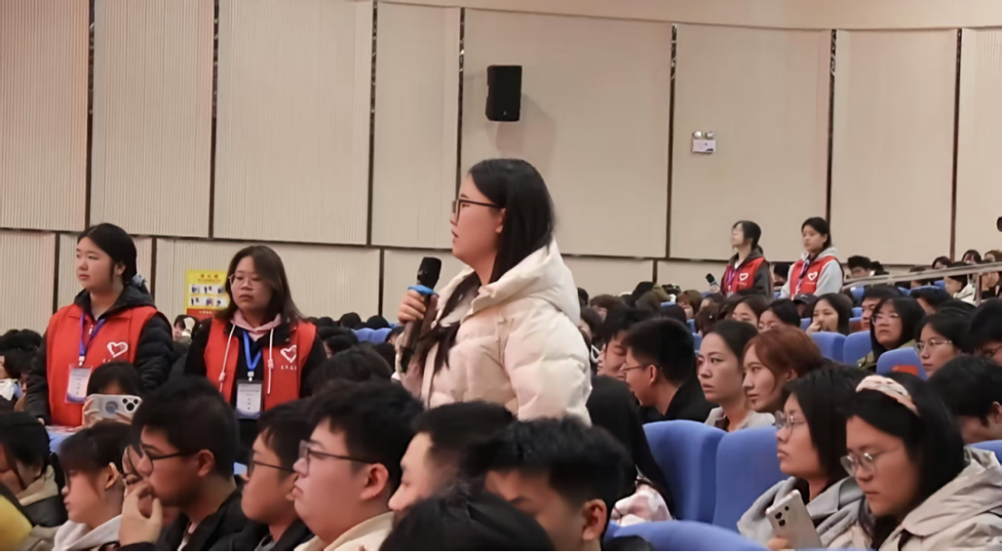 在互动交流环节,在场同学积极提问。专家与志愿者一一回应学生关切,对岗位选择、服务保障、专业适配等问题进行解答并指导,使更多同学坚定投身西部计划的决心。