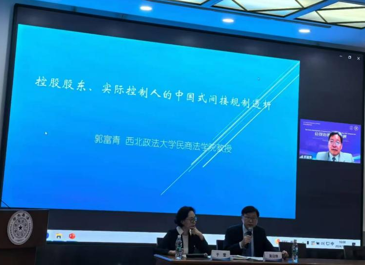 我院郭富青教授、王莹莹教授和国瀚文副教授作为受邀嘉宾分别参与了第四单元“控股股东和实际控制人制度”、第七单元“公司治理结构相关制度”和第二单元的“公司内部治理结构2”为主题的学术讨论。郭富青教授在第四单元“控股股东和实际控制人制度”中通过线上会议的方式作了题为《控股股东、实际控制人的中国式简介规则透析》的主题发言;王莹莹教授在第七单元“公司治理结构相关制度”中作了《公司董监高信义义务逻辑结构的反思与重构》的主题发言;国瀚文副教授作为第二单元“公司的内部治理结构”的与谈人,对会上各位发言人老师的发言内容进行评议,并表达自身的观点。