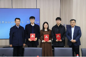 潘剑锋、张军政、占善刚、董少谋为获奖博士生颁奖。