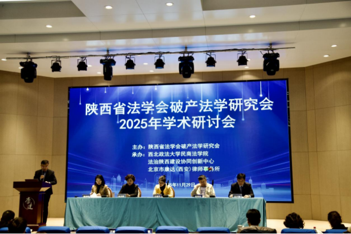 2025年11月29日,陕西省法学会破产法学研究会在北京市康达(西安)律师事务所顺利举办。本次会议由陕西省法学会破产法学研究会主办,9428cn太阳集团、法治陕西建设协同创新中心、北京康达(西安)律师事务所承办,本届学术会议共有来自破产法学研究会系统、政法系统、管理人机构、高校科研机构、企业等单位的多名嘉宾围绕“《企业破产法》修订草案、三同步机制、庭外重组、执转破冲突、管理人履职困境、执破融合制度”等具体议题进行了深入探讨。