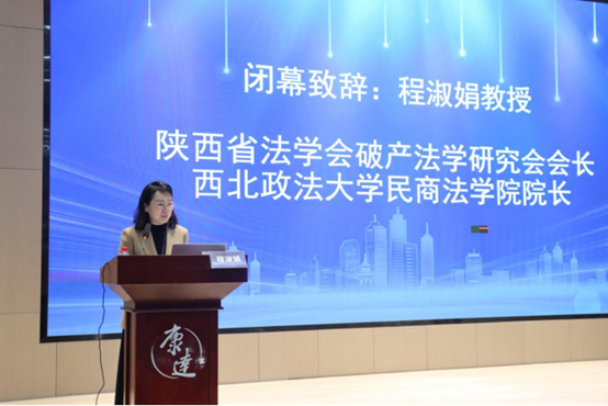 最后,陕西省法学会破产法学研究会会长程淑娟教授作总结致辞。她表示,此次会议意义非凡,全方位展现了破产法研究的深度与广度,彰显了各界对破产法领域的高度重视与不懈深耕。程教授指出,会议在理论研究方面成效显著,大幅提升了破产法研究会的学术档次。研讨内容既涵盖“执转破”、破产与信托等核心关键议题,又充分体现多学科融合的鲜明特色,实现了理论与实务的深度碰撞。最后,程淑娟教授向所有参会嘉宾的大力支持表示诚挚感谢,衷心祝愿陕西省破产法的学术研究与实务工作在未来能够持续精进,再创辉煌。