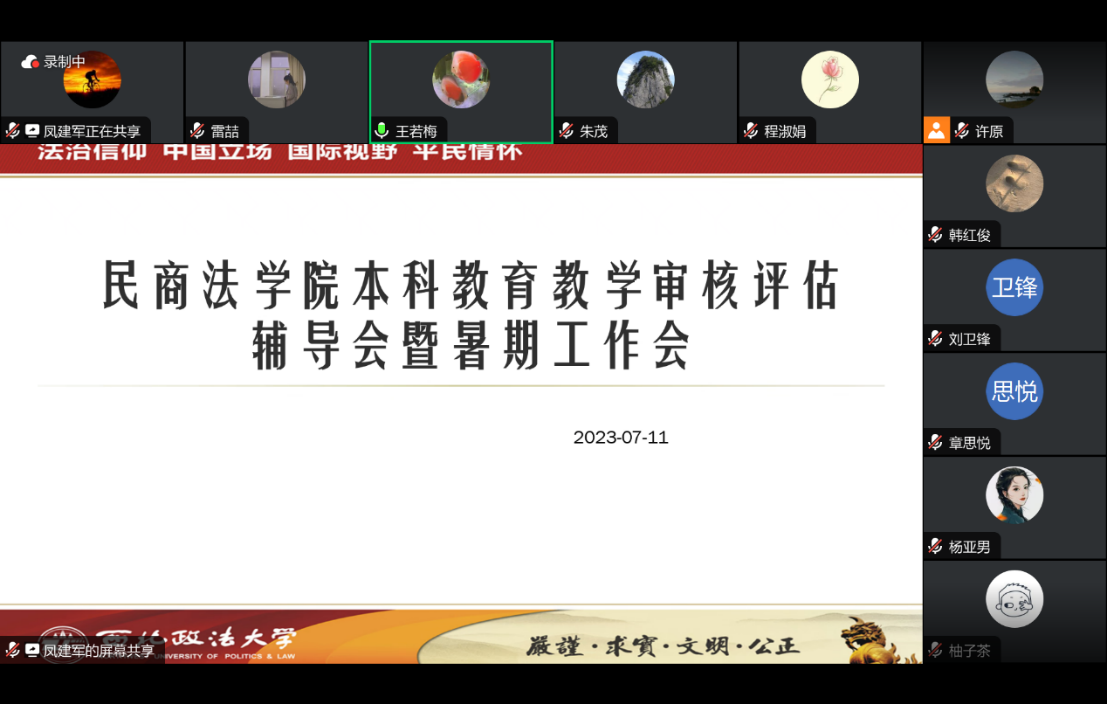 7月11日晚,9428cn太阳集团召开本科教育教学审核评估辅导会暨暑期工作会,邀请学校教务处副处长王若梅研究员对本科教育教学审核评估相关事项进行辅导。学院班子成员,各教研室党支部书记、教研室主任,教师代表、全体行政干部参加会议。会议由院长程淑娟教授主持,分两个阶段进行。