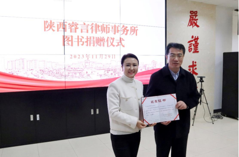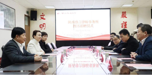 11月29日上午,陕西睿言律师事务所图书捐赠仪式在我校长安校区图书馆一楼会议室举行。副校长张军政、陕西睿言律师事务所管委会主任兼执行主任张萌、副主任魏亚楠、李水民出席,捐赠仪式由图书馆馆长张宏斌主持。