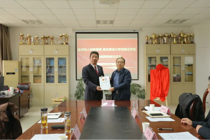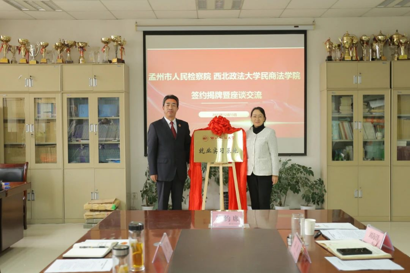 12月13日上午,我院与孟州市人民检察院举行校检合作签约揭牌仪式。学校党委副书记张军政,孟州市检察院党组书记、检察长吴兴军,学院院长程淑娟,学院党委书记朱茂,学院民事诉讼法教研室副主任刘海洋老师参加仪式。学院党委副书记、副院长刘超主持仪式。