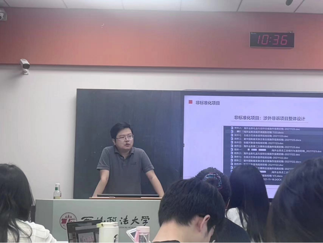 因标准化项目具有流程明确、法律框架成熟、操作模式相对固定的特点,IPO在标准化项目中又最为典型,陈律师从IPO项目出发,向同学们展示了律师在标准化项目中需要做的合规性核查、法律文件准备、协作与资源整合等一系列准备工作,使同学们对商事非诉项目的准备工作有一个较为直观的认识。