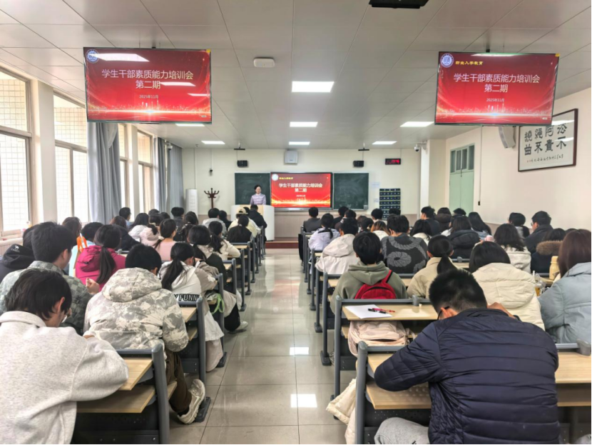 为进一步提升学生干部的实务能力与综合素养,11月26日,我院2025级本科生学生干部素质能力培训会第二期在致知楼301教室召开。2025级辅导员丁艳艳主讲,2025级辅导员张智超主持,全体学生干部参与本次培训。