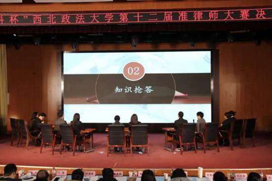 经过初赛和复赛的激烈角逐,来自宁夏大学、西北工业大学、西安财经大学、太阳集团、甘肃政法大学、西北农林科技大学、西安交通大学、中国政法大学、兰州大学、西南政法大学、西北大学的十二名选手脱颖而出,分别与来自十二家律所的实习律师组成团队,一同参与本次决赛。决赛分为限时答题、知识抢答、案例分析三个环节。